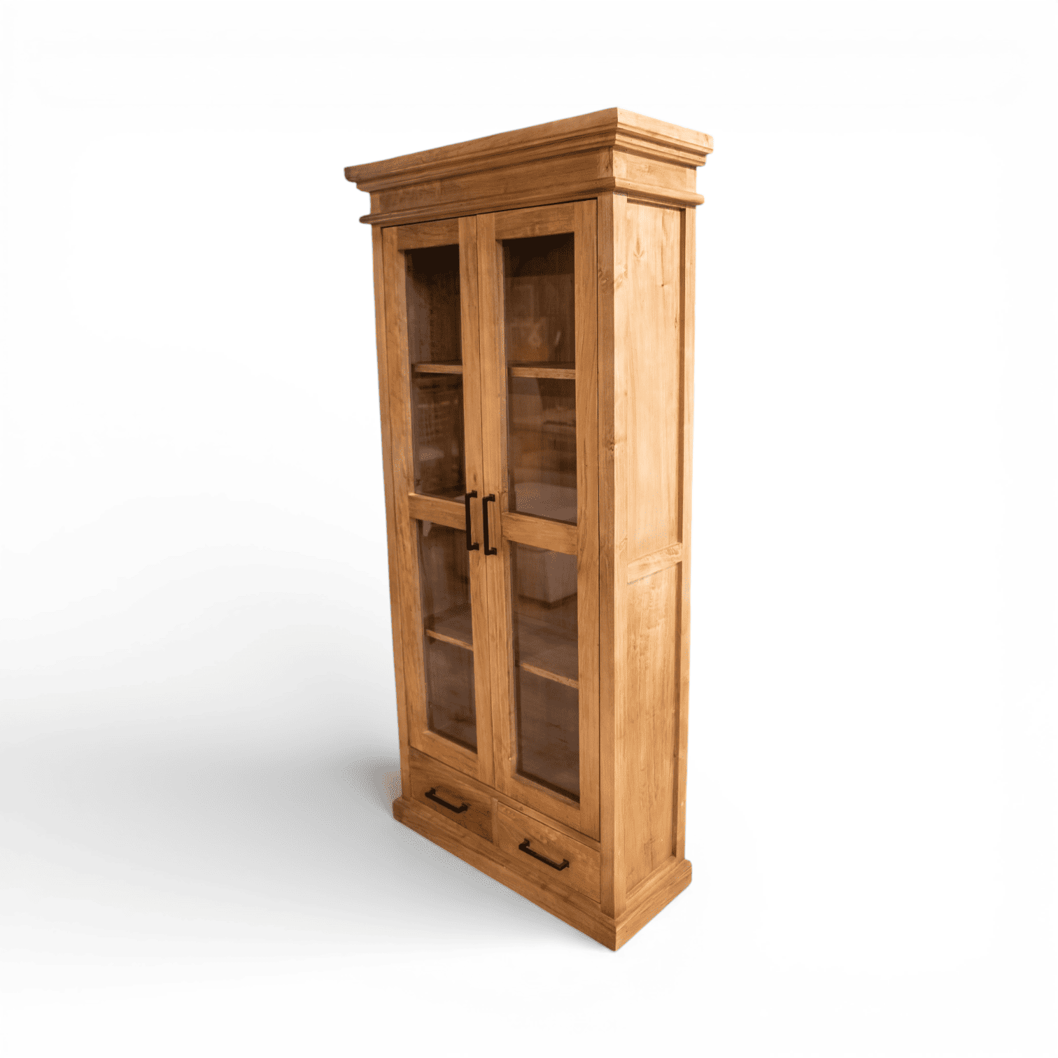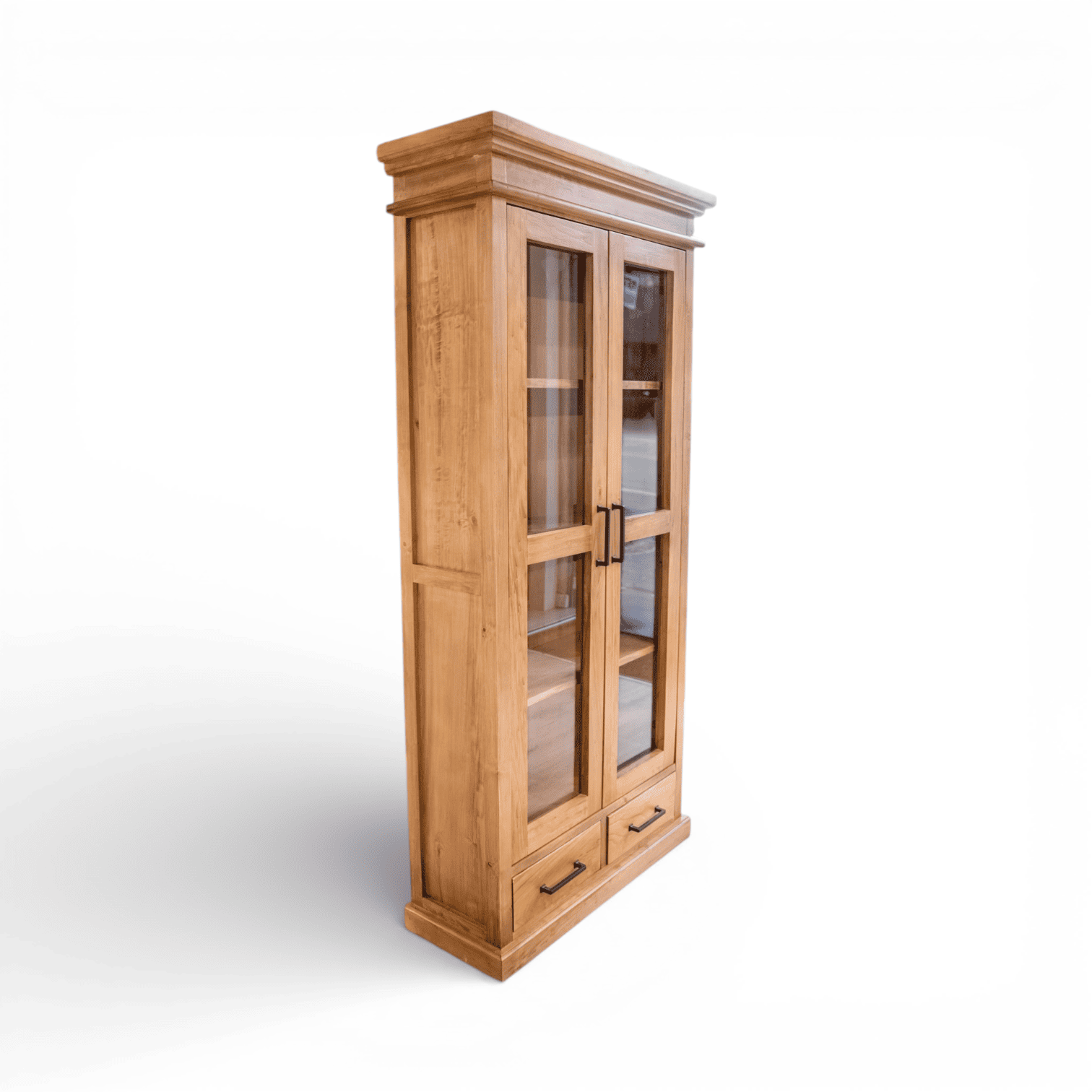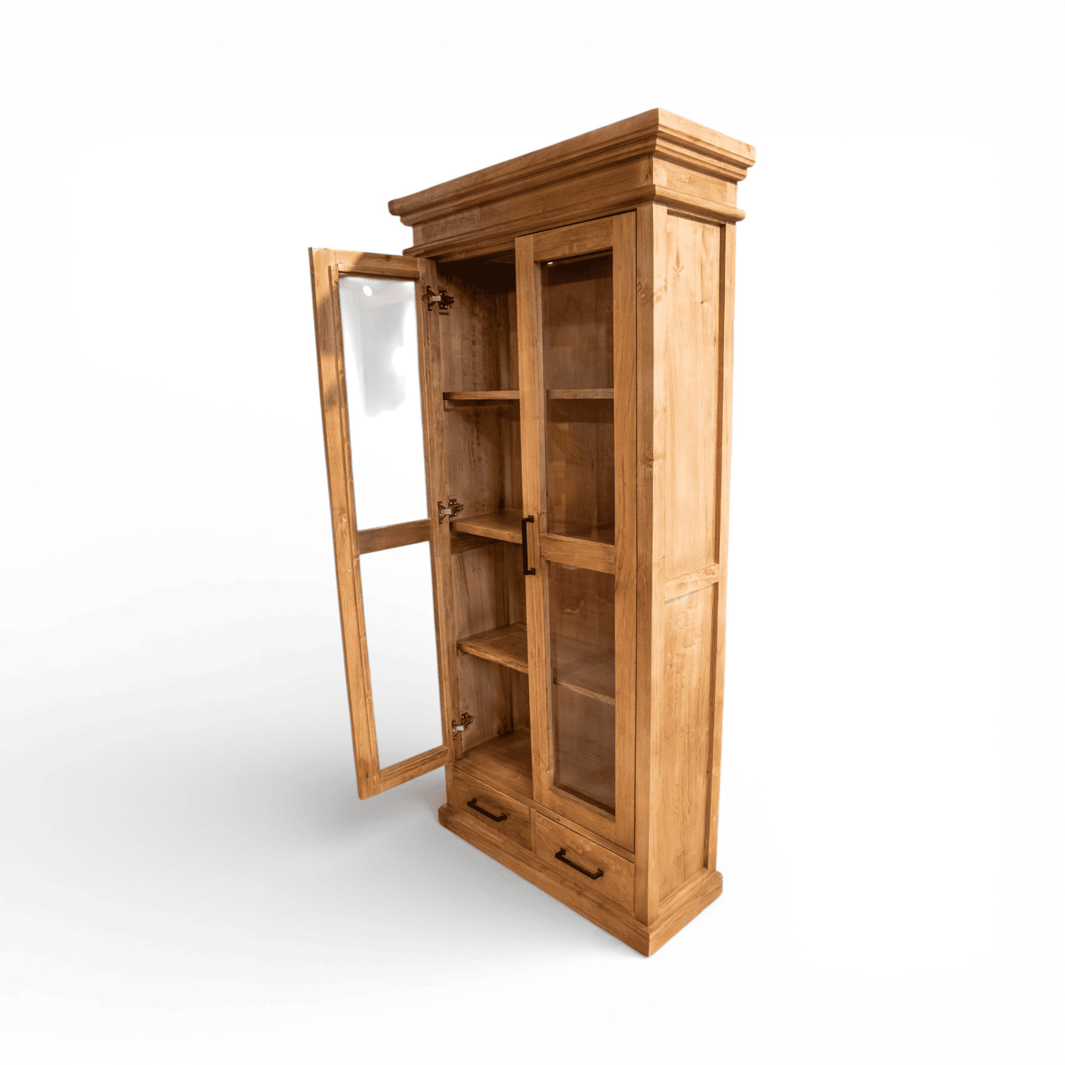 Combina la funcionalidad de un exhibidor con la calidez inconfundible de la madera maciza. Su diseño de inspiración clásica y terminaciones artesanales la convierten en el mueble ideal para jerarquizar un estudio, living o comedor.