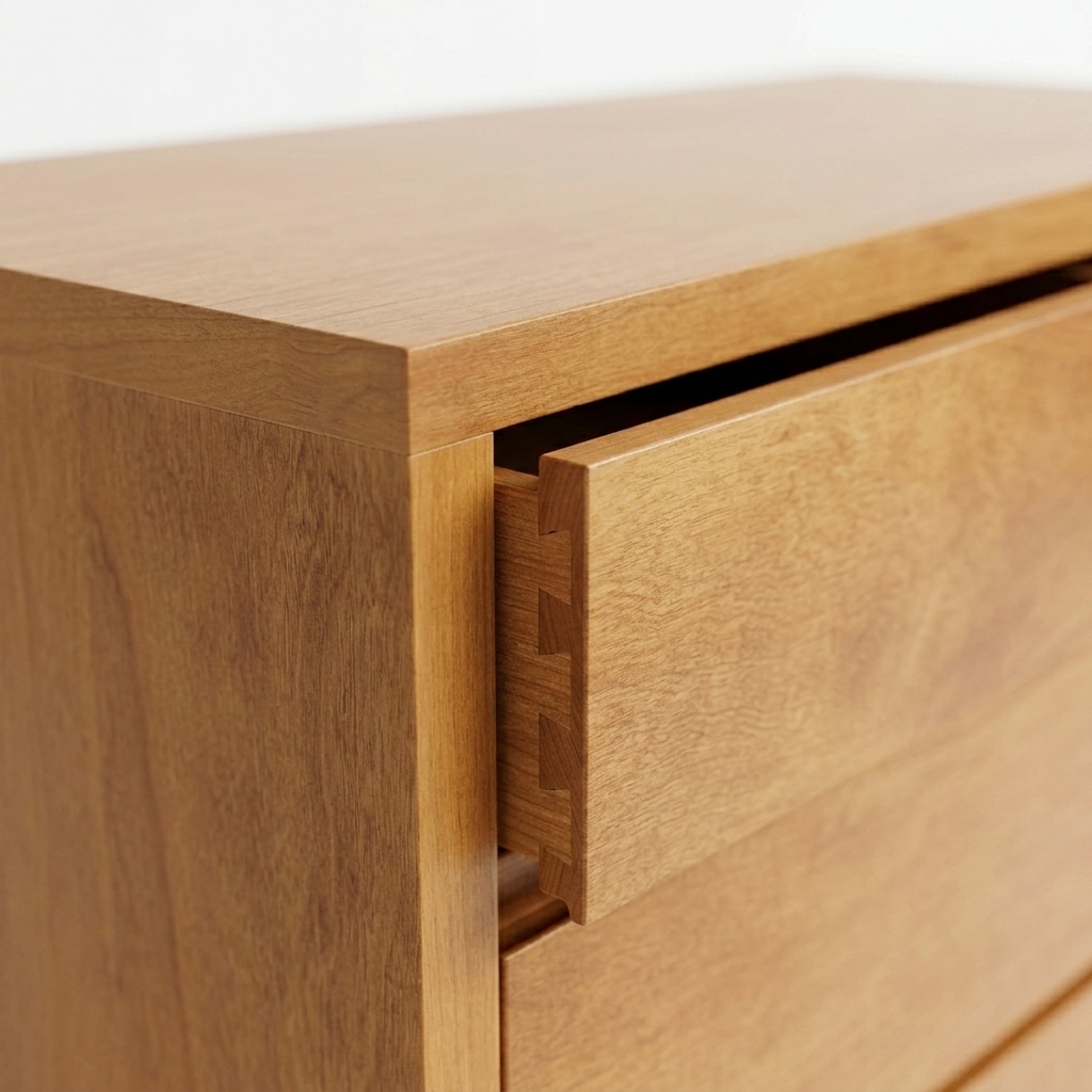 • Calidad: Cajones con guías de deslizamiento suave y terminación en lustre poliuretánico, un acabado premium que protege la superficie y resalta el brillo natural de la madera.